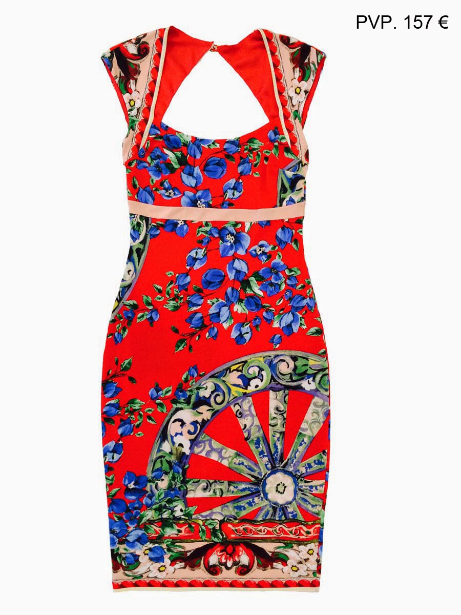 Colores flúor llenos de energía. Este vestido mezcla motivos florales con una cara en la zona de la falda. Sienta como un guante ya que el tejido es elástico, resultando muy cómodo.